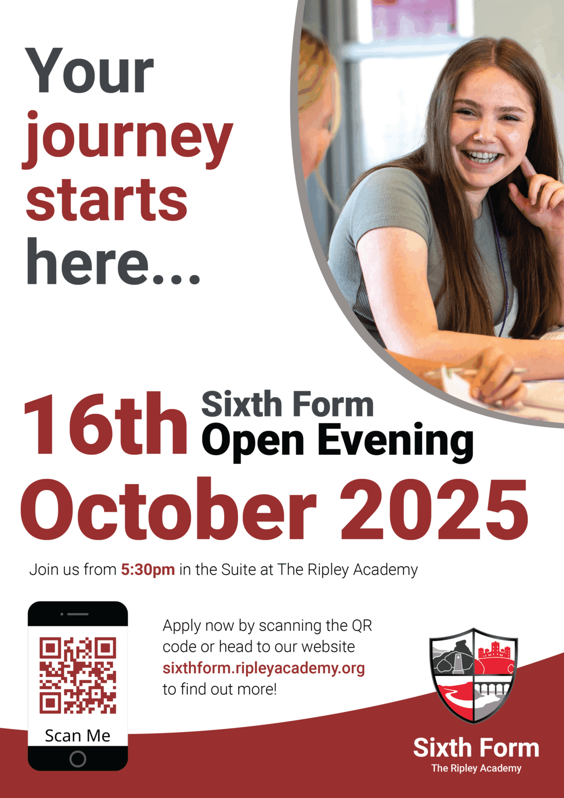 We are delighted to invite you, your family and friends to join us for our Sixth Form Open Evening. We pride ourselves on offering students the highest quality Post-16 education. Open Evening is an exciting event that showcases everything our The Sixth Form at The Ripley Academy has to offer.